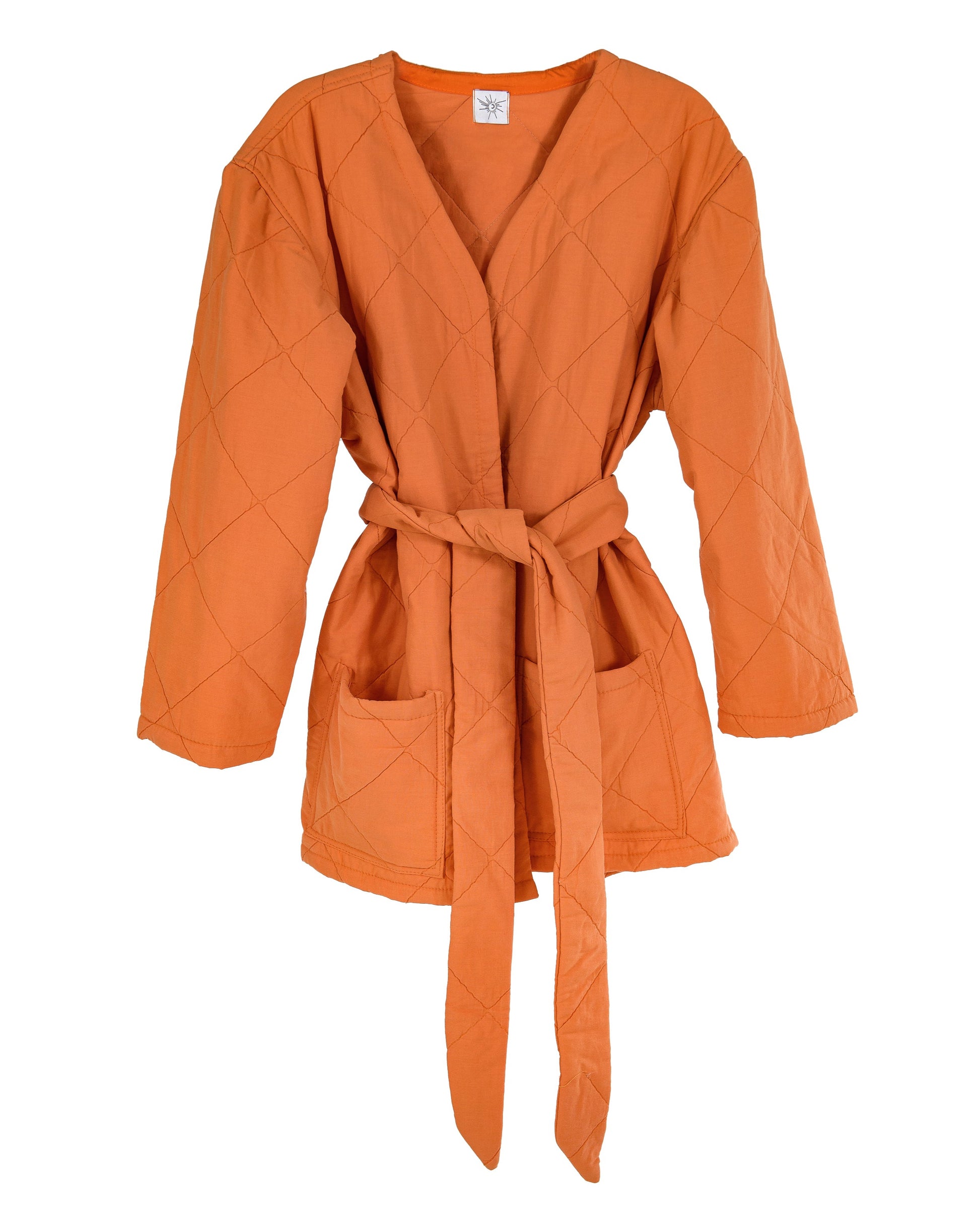 A light quilted jacket, featuring two large pockets at the front and a separate waist belt. Can be used as an extra layer underneath a bigger coat